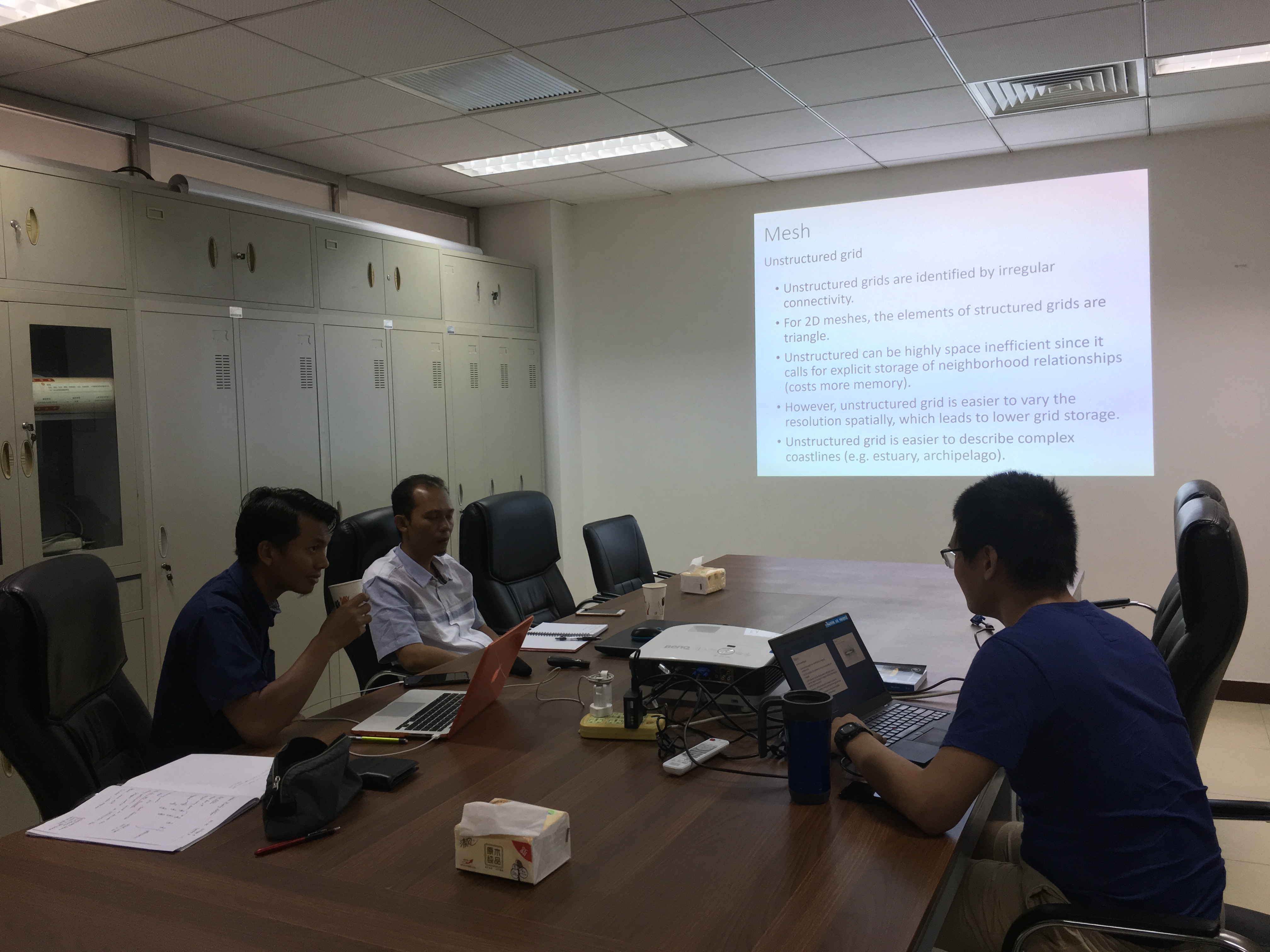 隨后,我方對馬來西亞理工大學代表開展海洋動力數值模擬軟件和海洋能資源評估方法培訓,特別是基于遙感數據的波浪數值模型方面進行了深入的交流,馬方表示技術中心在波浪能資源評估研究基礎扎實,期待未來中馬雙方的深入合作。(工程中心 吳國偉)
