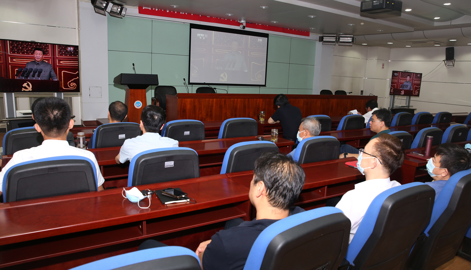7月1日上午8時,國家海洋技術中心全體干部職工集中觀看慶祝中國共產黨成立100周年大會,聆聽習近平總書記重要講話。
