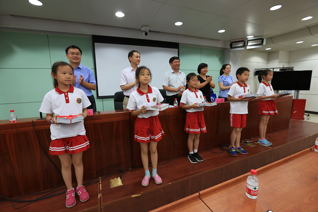 活動啟動儀式上,技術中心向來訪的師生們贈送了海洋科普圖書和中心徽章,孩子們嘹亮地合唱校歌,校方代表作了發言,對技術中心精心安排的科普宣傳活動予以感謝。啟動儀式后,師生們集體觀看了題為《保護海洋,人人有責》海洋環保紀錄片,紀錄片生動直觀地展示了當前海洋生態環境破壞的嚴重性和生態環境保護的重要性,進一步強化了師生們的海洋環保意識。隨后,在中心科技人員的講解下,師生們參觀了中國海洋能發電裝備展館及國家海域動態監視監測系統網管中心和海洋監測設備動力環境實驗室。