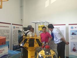 檢查組專家在中心副主任彭偉陪同下參觀了中心科技成果展示室和海洋環(huán)境監(jiān)測設備動力環(huán)境實驗室。