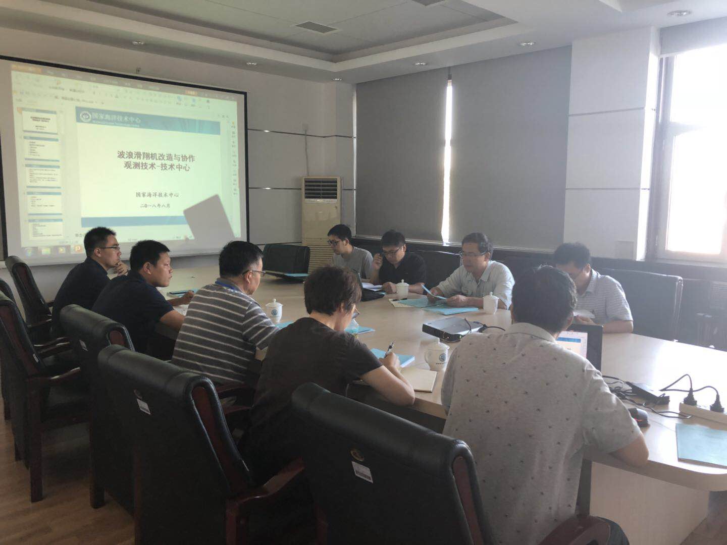 2018年8月24日,國家重點研發計劃重點專項“無人無纜潛水器組網作業技術與應用示范”項目總負責人浙江大學教授徐文、“海洋滑翔機改造與協作觀測技術”課題負責人天津大學教授王延輝以及第三方監理公司經理邢華就我中心承擔的子課題“波浪滑翔機改造與協作觀測技術”的進展情況進行了檢查。中心業務處副處長趙宇梅、深海室主任張選明及能源室副主任王兵振等陪同考察并就相關事宜進行了磋商。