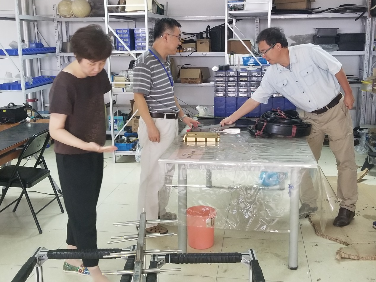 會議結束后,徐文教授一行在中心有關領導的陪同下參觀考察了波浪滑翔機裝配實驗室,對實驗室內正在裝配的波浪滑翔機進行了技術指導并提出了相關建議,為我中心后期波浪滑翔機的技術升級提供了新的思路和方向。