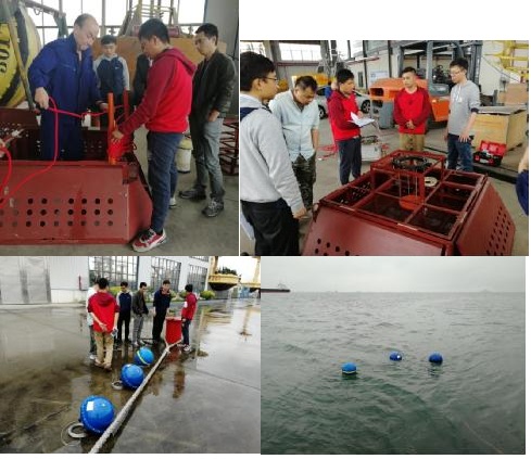 3月6日,南海調查技術中心在碼頭組織召開了現場驗收會,首先對合同包含采購內容進行了驗齊。隨后,我方培訓人員進行了表面漂流浮標布放操作演示和接收系統操作演示,并現場試驗。對海床基系統安裝進行了現場逐項演示教學。3月7日,根據甲方要求,在指定地點完成了表面漂流浮標岸站接收系統的安裝和測試。在碼頭附近水域完成了海床基系統整體海上布放、釋放和系統回收試驗。3月9日,在桂山島附近海域進行了表面漂流浮標抽樣試驗性布放和性能測試,驗證了浮標測量數據的準確性和一致性,岸站接收系統有效數據接收率達到100%。