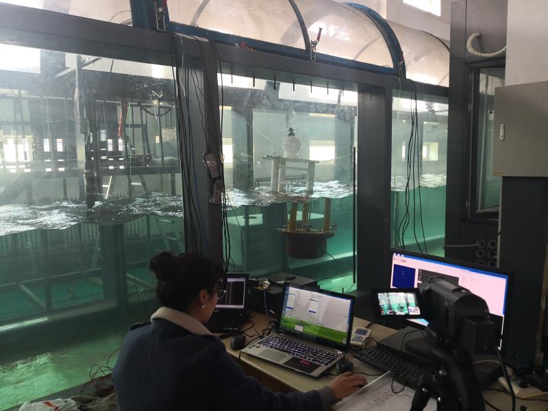3月25日至4月17日期間,中心動(dòng)力環(huán)境實(shí)驗(yàn)室受中電科海洋信息研究院有限公司委托,在風(fēng)浪流生成水槽完成了浮臺(tái)模型極端海況試驗(yàn)。至此,歷時(shí)4個(gè)月多時(shí)間,中心動(dòng)力環(huán)境實(shí)驗(yàn)室完成了中電科海信院委托的包括自由衰減、頻響函數(shù)確定、不規(guī)則波耐波性、拖曳阻力和極端海況試驗(yàn)在內(nèi)的全部試驗(yàn)委托合同內(nèi)容。