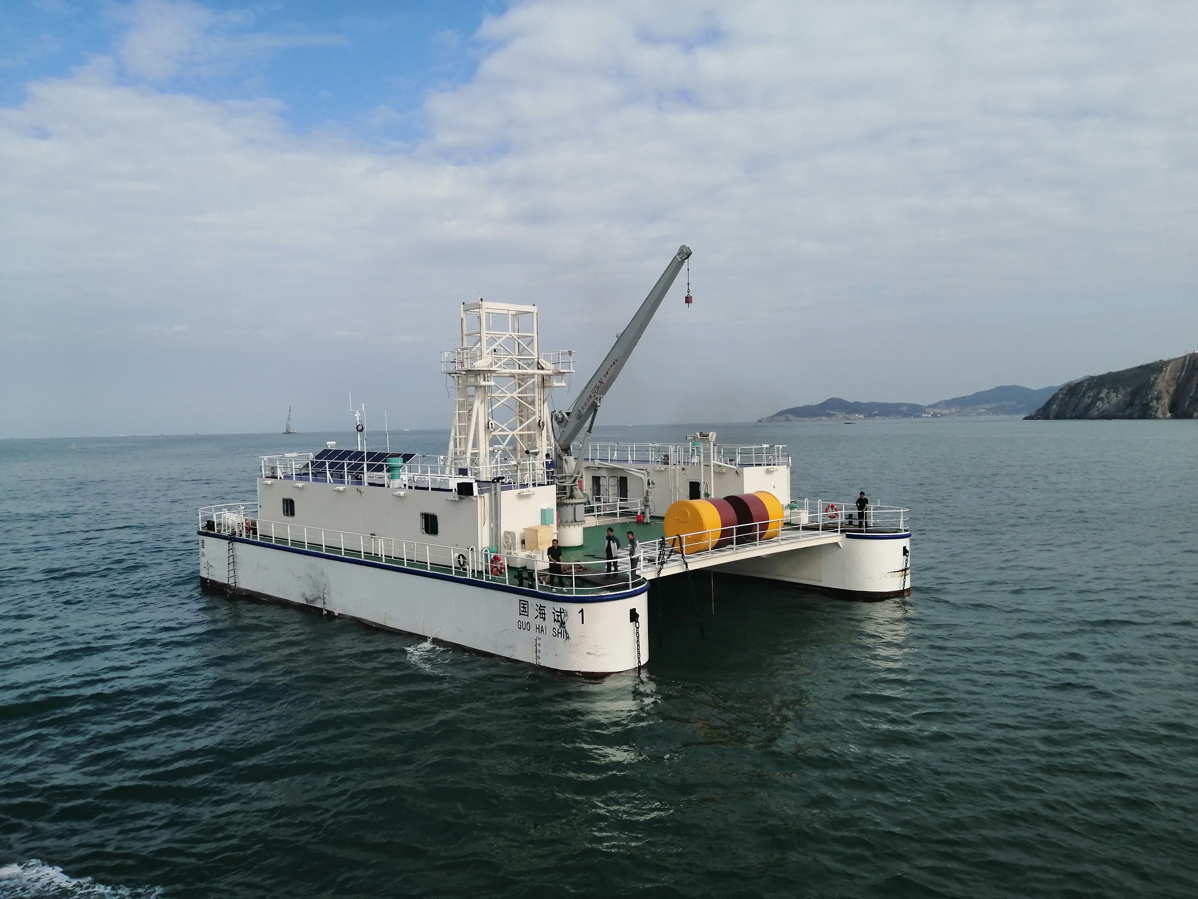 業(yè)務工作2019年9月12日,國家淺海綜合試驗場順利完成 “國海試1號” 試驗平臺現(xiàn)場布設。本試驗平臺由國家海洋技術中心基于國家淺海綜合試驗場試驗需求設計建造,具備甲板機械、實驗設施、信息傳輸以及供電等海洋儀器設備試驗與測試條件,可裝載潮流能發(fā)電機組開展測試試驗。