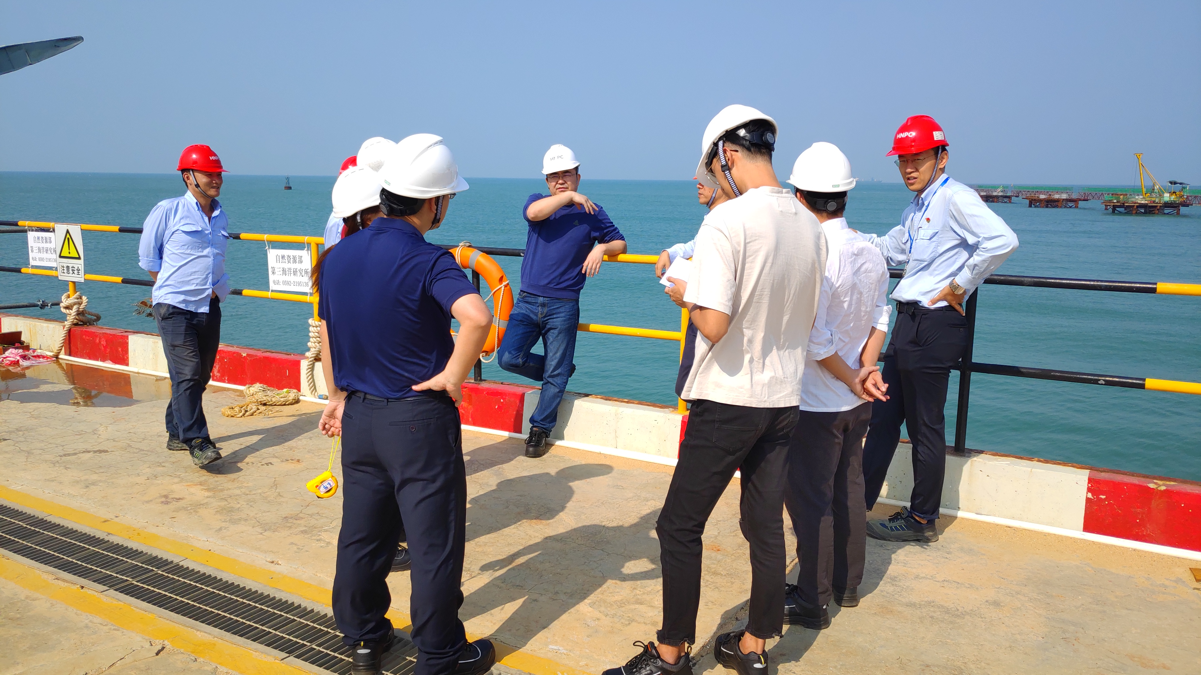 在岸基碼頭,課題組就立體剖面監(jiān)測系統(tǒng)數(shù)據(jù)接收站供電、通信、坐底監(jiān)測系統(tǒng)與相關(guān)系統(tǒng)的接口細(xì)節(jié)、海纜路由及鋪設(shè)等相關(guān)事宜與海南核電相關(guān)負(fù)責(zé)人及各子課題科研人員開展了討論分析,并明確了初步的實施方案。