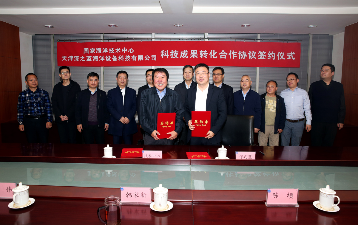 11月26日上午,COPEX型剖面探測漂流浮標科技成果轉化項目合作協議簽約儀式在中心舉行。國家海洋技術中心主任韓家新與天津深之藍海洋設備有限公司總經理魏建倉代表雙方簽署科技成果轉化合作協議,濱海高新區管委會副主任王洪、市委軍民融合發展委員會辦公室專職副主任陳軍方、市規劃和自然資源局海洋經濟處處長楊立及濱海高新區、國家海洋技術中心、天津深之藍海洋設備科技有限公司相關領導出席簽約儀式。
