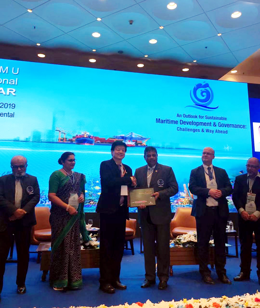 本次國際研討會設(shè)海洋連通和安全、海洋健康和治理、海洋技術(shù)和資源開發(fā)三個主題,孟加拉國規(guī)劃部部長、海軍總司令和教育部副部長出席研討會并致辭。會議邀請了15個國家和聯(lián)合國的近700名嘉賓參會,共同圍繞孟加拉國海洋科技發(fā)展和資源開發(fā)問題進行了研討。會議期間,陳武軍書記與中國駐孟加拉國大使館武官、孟加拉國海事大學校長、孟加拉國海軍海事發(fā)展研究所主席、孟加拉國藍色經(jīng)濟辦公室主任、斯里蘭卡海軍前總司令、印度果阿大學教授、馬來西亞理工大學教授等進行了討論和合作交流。孟加拉國海事大學校長向陳武軍書記贈送了海事大學最新成果集,陳武軍書記作為嘉賓向作報告的英國、印度、馬來西亞和孟加拉國專家頒獎。