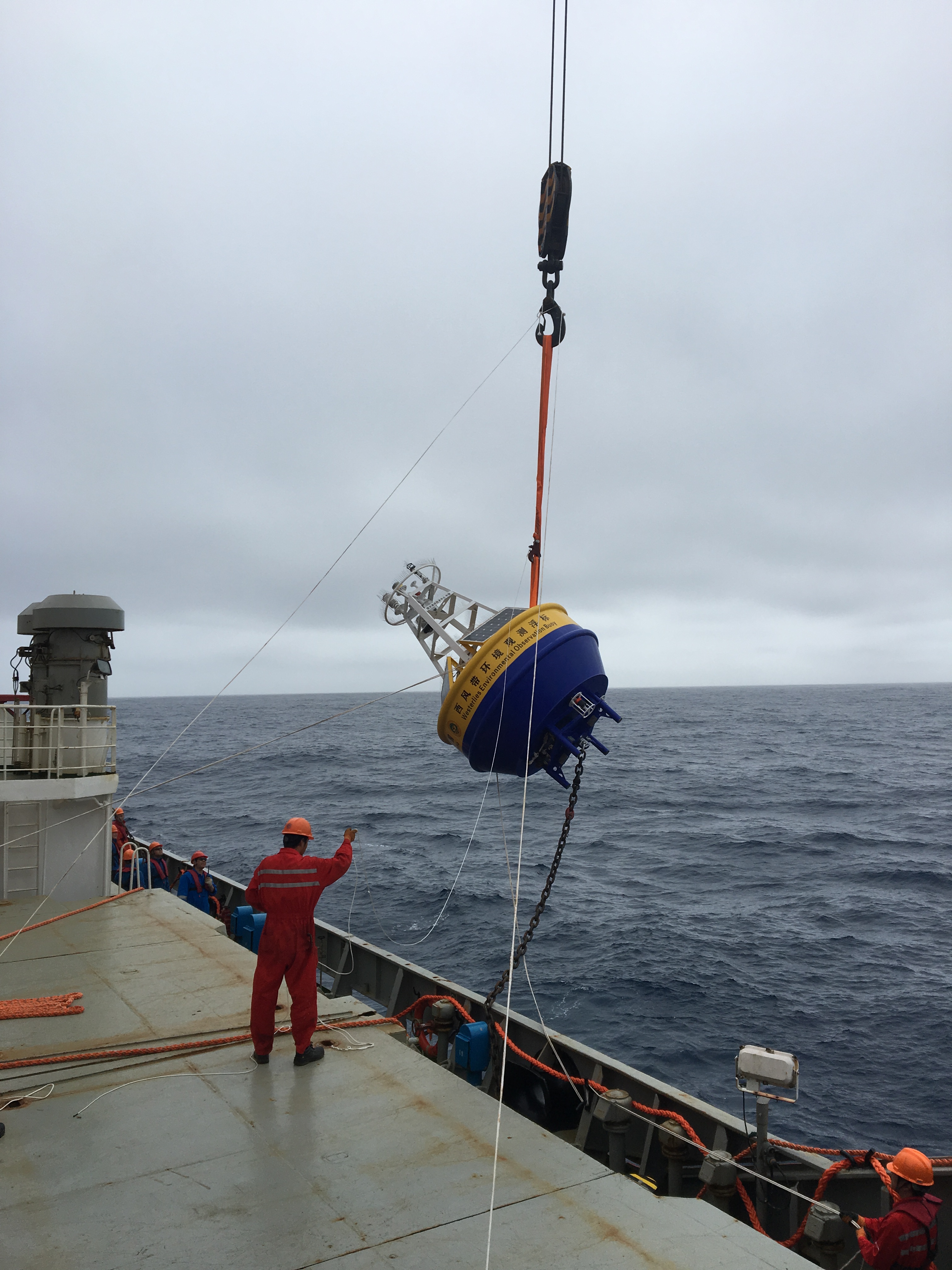 2020年1月1日11時,隨著西風帶海洋環境監測浮標數據順利接收,西風帶浮標在位運行滿一周年。2019年1月1日11時,我國第35次南極考察隊途經新西蘭附近海域(52°S,175°E)時,成功布放了我國首套由國家海洋技術中心自主研制的西風帶環境監測浮標,標志著南大洋大圓環計劃邁出了第一步。