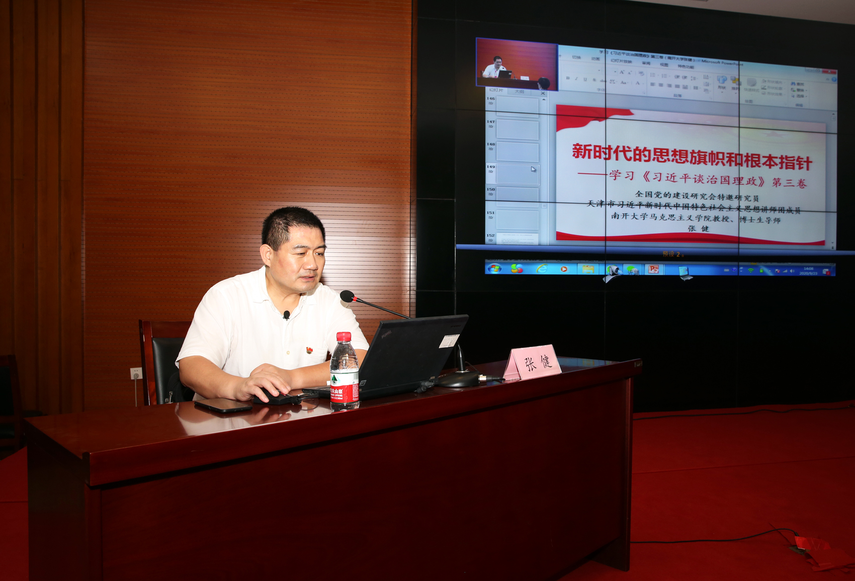 本次講座作為天津圖書館、南開圖書館主辦的首屆“悅讀基層行 書香滿南開”讀書節系列活動之一,是公益文化講座下基層的其中一站。講座邀請了南開大學馬克思主義學院張健教授講授《習近平談治國理政》第三卷。