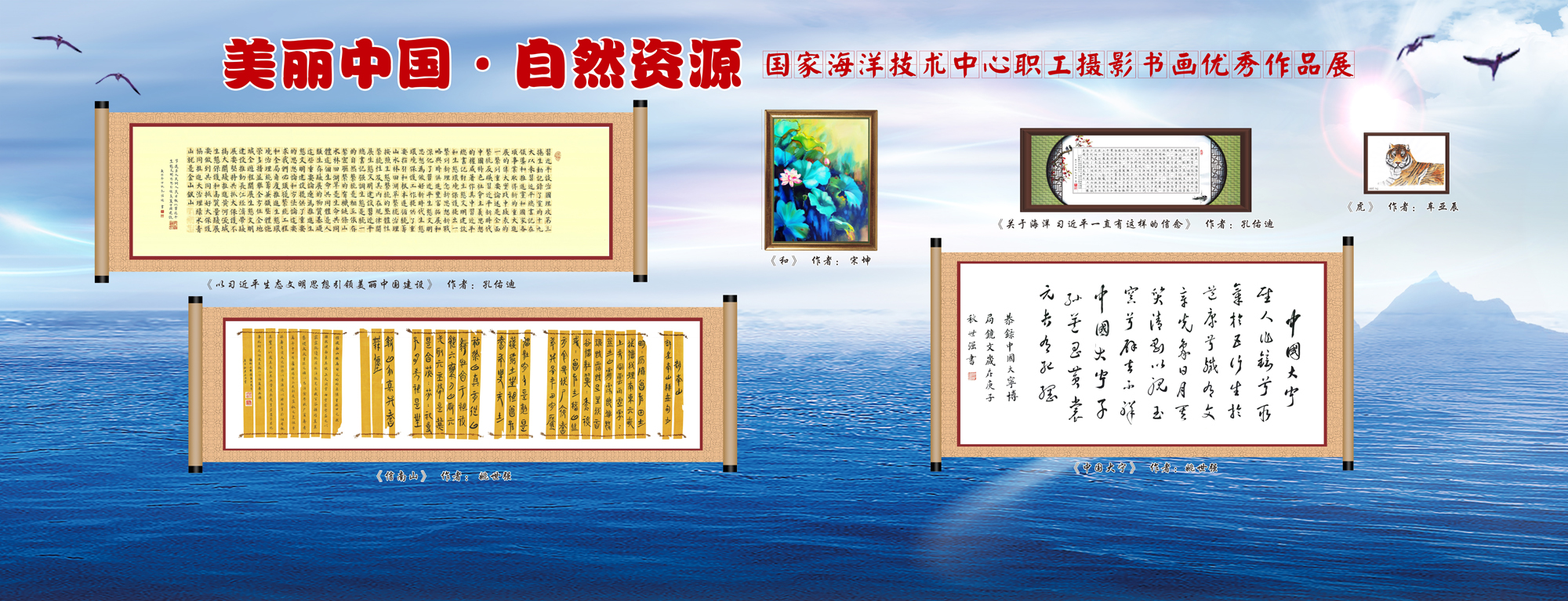 本次展覽以“美麗中國·自然資源”——自然資源部職工攝影書畫作品征集活動為契機,為中心職工搭建攝影書畫交流展示平臺,豐富職工業余文化生活,推進中心精神文明建設。在中心職工積極報送的百余幅作品當中,中心工會邀請部分攝影興趣小組成員擔任評委,經初選和復核環節,最終選取了50幅攝影、4幅書法和2幅繪畫作品參展。這些作品以一個個獨特的視角展現著中心職工對工作的熱忱、對生活的熱愛、對祖國壯美河山和遼闊海疆精彩描繪,把美麗中國的點點滴滴呈現在觀眾面前。