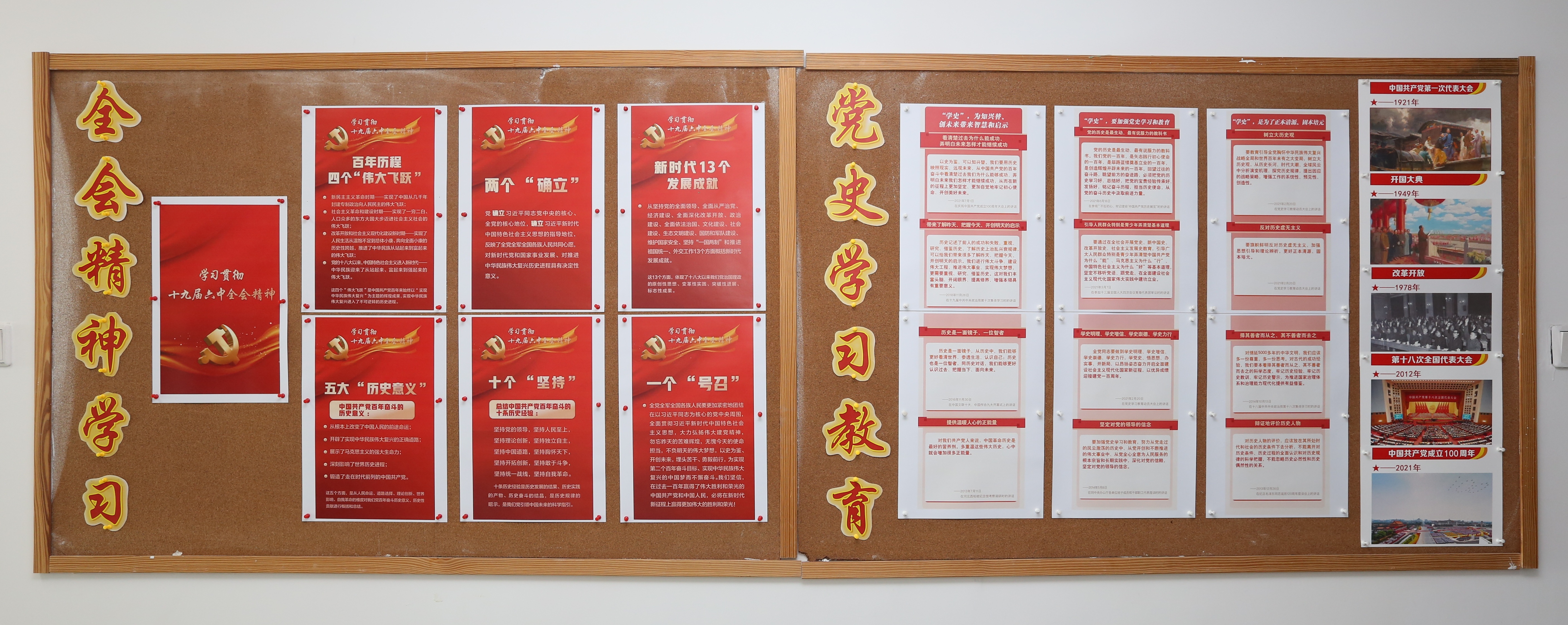 展板集教育性和展示性于一體,設計巧妙、內容豐富,包括“黨史學習教育”、“全會精神學習”、“支部活動”和“學習園地”四個板塊。“黨史學習教育”板塊圖文并茂,展現了建黨百年歷程中的部分重大事件以及關于“學史”重要意義的闡述;“全會精神學習”板塊系統(tǒng)展示了《中共中央關于黨的百年奮斗重大成就和歷史經驗的決議》的學習要點,宣傳黨的十九屆六中全會精神;“支部活動”板塊集中展示了支部成立以來組織開展的集中學習、專題交流、黨課以及主題黨日活動等;“學習園地”展示了支部部分學習材料以及全體黨員的黨史學習心得,反映黨員學習效果。