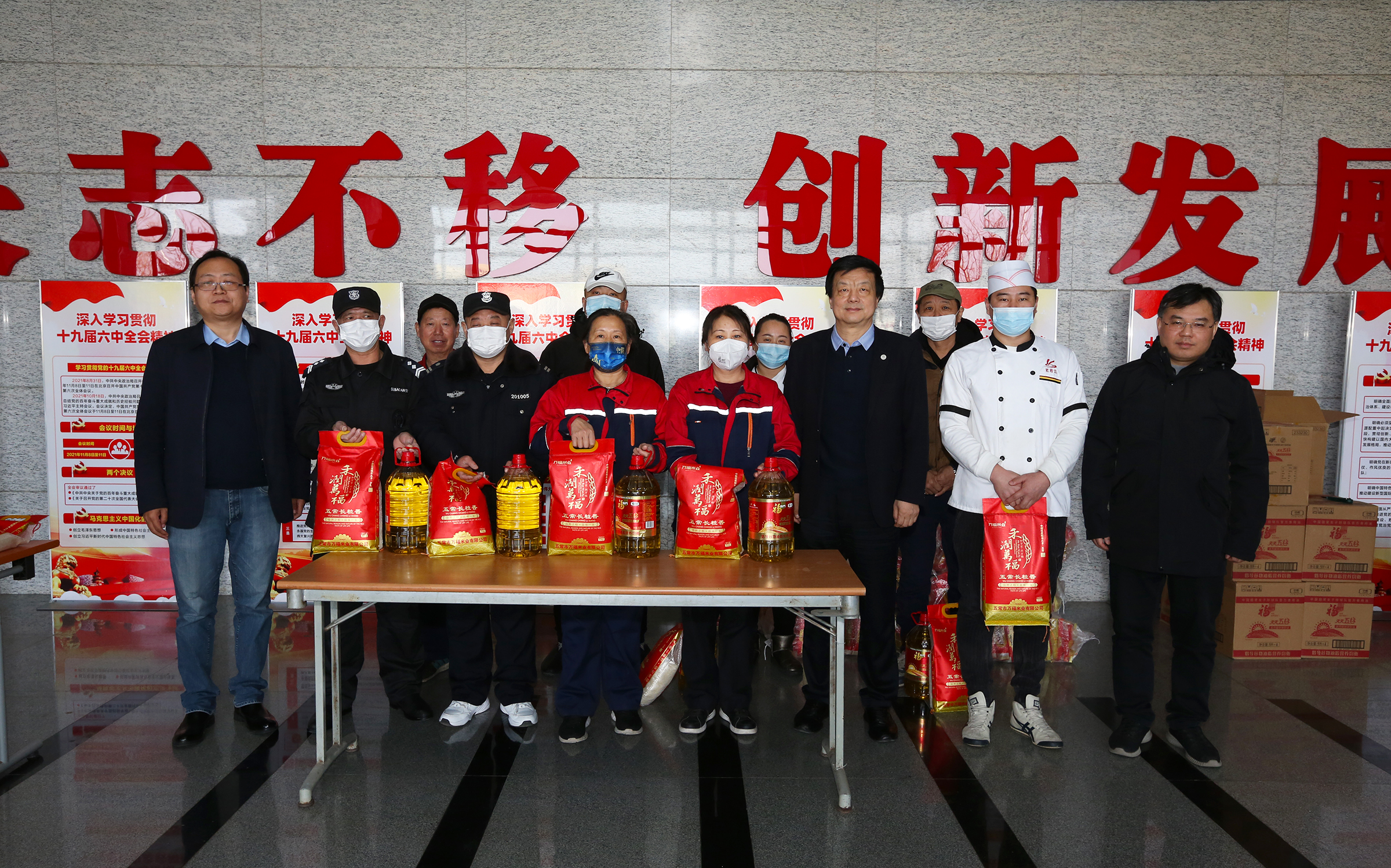 春節(jié)前夕,中心黨委書記陳武軍、副主任彭偉、紀(jì)委書記王世福對保安、保潔、職工食堂后廚等工作人員進(jìn)行了慰問,向他們送上慰問品并致以節(jié)日問候。