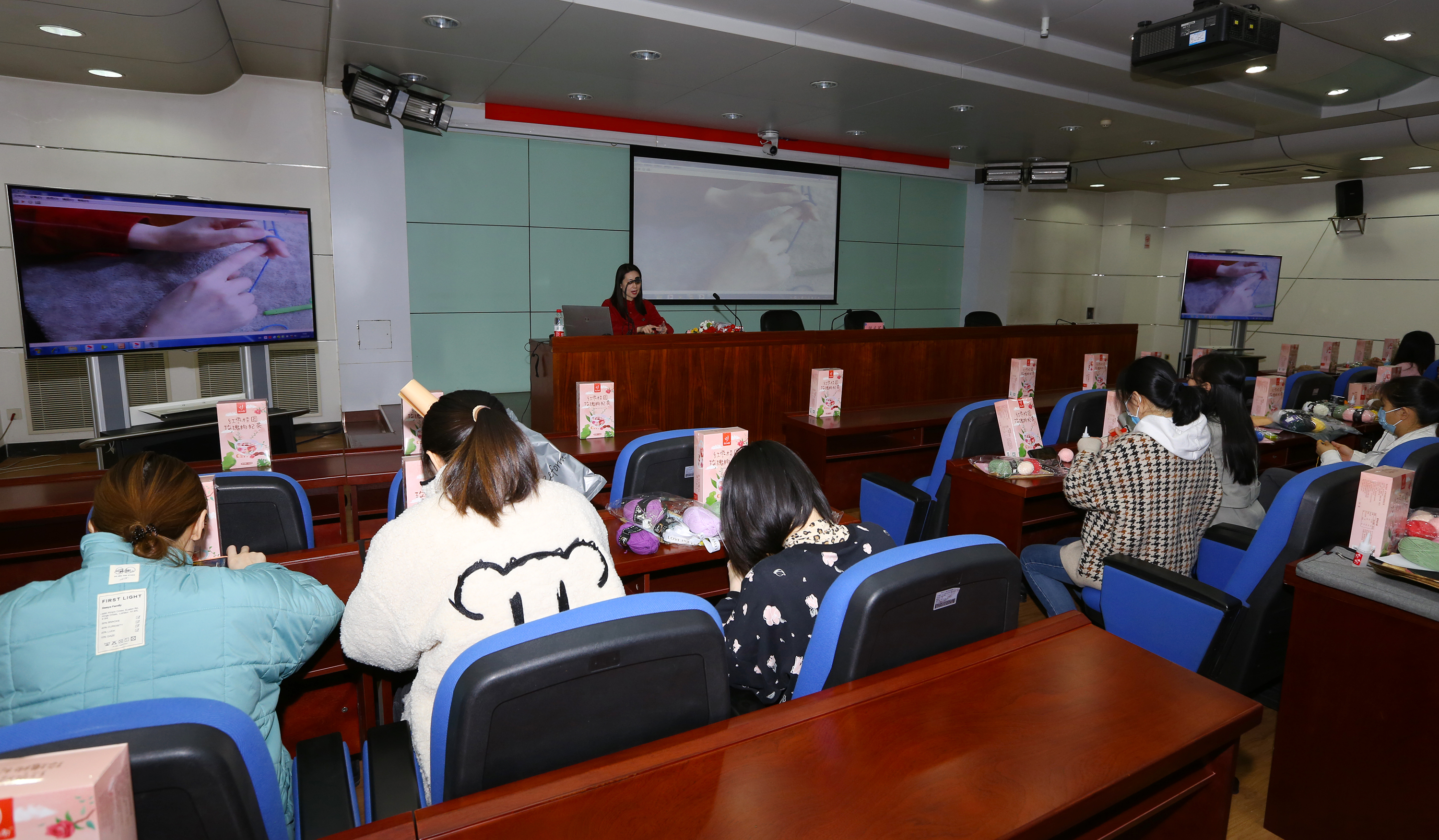 活動現(xiàn)場,黨辦副主任張榕介紹了活動主題和背景,教授大家北京冬奧會主題曲《一起向未來》的手勢舞和北京冬奧會頒獎花束絨線花的針法技巧。全民關(guān)注的冬奧會、新穎時尚的手勢舞、非遺技藝的絨線花、暖身暖心的花果茶,走心的安排讓女職工們感受到了別樣的幸福。