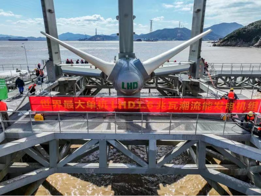 2022 年3 月10 日,杭州林黃丁新能源研究院有限公司承擔(dān)的“兆瓦級舟山潮流能并網(wǎng)示范工程項目”研發(fā)的潮流能發(fā)電機組“奮進號”實現(xiàn)并網(wǎng)。3 月20 日,機組并網(wǎng)功率為1030 千瓦,達到兆瓦級裝機要求。該機組于2 月24 日在浙江舟山秀山島成功下海。該機組研發(fā)項目經(jīng)費由2018 年海洋可再生能源資金項目支持,機組總重325 噸,裝機功率不小于1 兆瓦,預(yù)計年發(fā)電量不少于100 萬度。(海洋能項目管理辦公室 倪娜)