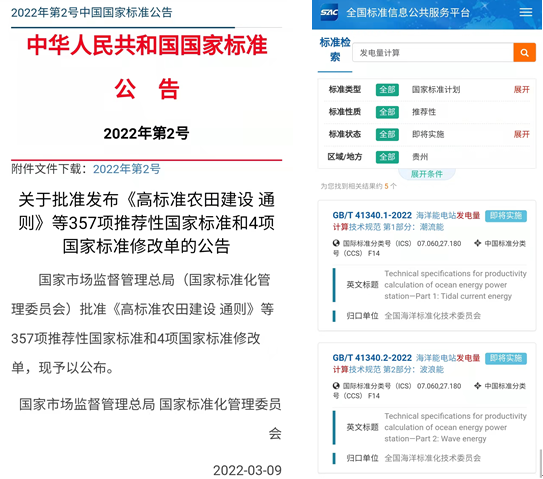 近日,我中心承擔(dān)的《海洋能電站發(fā)電量計(jì)算技術(shù)規(guī)范 第1部分:潮流能》(GB/T 41340.1-2022)和《海洋能電站發(fā)電量計(jì)算技術(shù)規(guī)范 第2部分:波浪能》(GB/T 41340.2-2022),經(jīng)國(guó)家市場(chǎng)監(jiān)督管理總局、國(guó)家標(biāo)準(zhǔn)化管理委員會(huì)批準(zhǔn),于2022年3月9日正式發(fā)實(shí)施。《規(guī)范》確立了海洋能電站發(fā)電量計(jì)算的流程、微觀選址和發(fā)電量計(jì)算方法,規(guī)定了潮流能和波浪能電站發(fā)電量計(jì)算的工作流程、陣列規(guī)模的等級(jí)劃分、資料收集、現(xiàn)場(chǎng)觀測(cè)、數(shù)值模擬、微觀選址、發(fā)電量計(jì)算方法和技術(shù)報(bào)告的編寫(xiě)內(nèi)容,是指導(dǎo)我國(guó)海洋能電站發(fā)電量計(jì)算的基礎(chǔ)性標(biāo)準(zhǔn)。《規(guī)范》的正式實(shí)施將為潮流能和波浪能電站發(fā)電量計(jì)算提供支撐和依據(jù),研制海洋能電站發(fā)電量計(jì)算技術(shù)規(guī)范,規(guī)范海洋能發(fā)電站計(jì)算方法,是大規(guī)模開(kāi)發(fā)利用海洋能資源的重要技術(shù)保障。(海洋能發(fā)展中心 吳國(guó)偉)