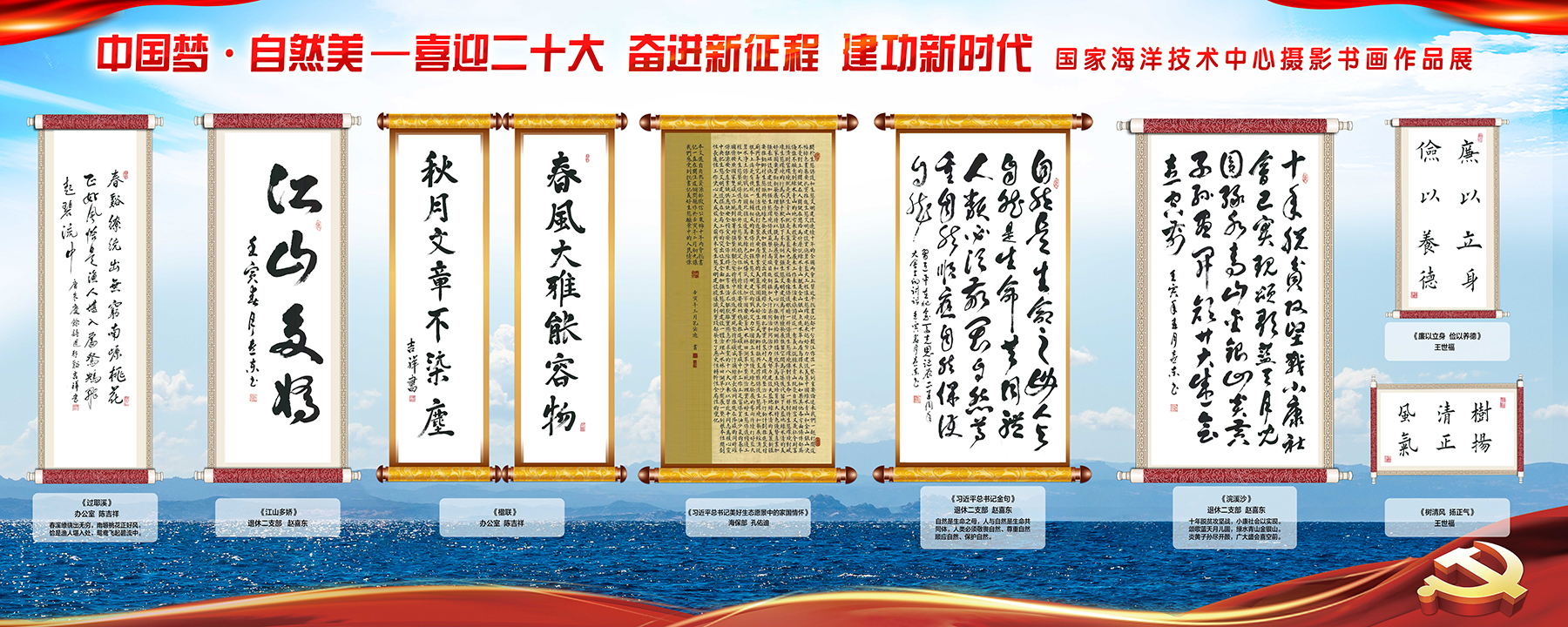 七一前夕,中心舉辦了“中國夢·自然美——喜迎二十大 奮進新征程 建功新時代”國家海洋技術中心攝影書畫作品展,展示了34幅(組)攝影書畫獲獎作品。