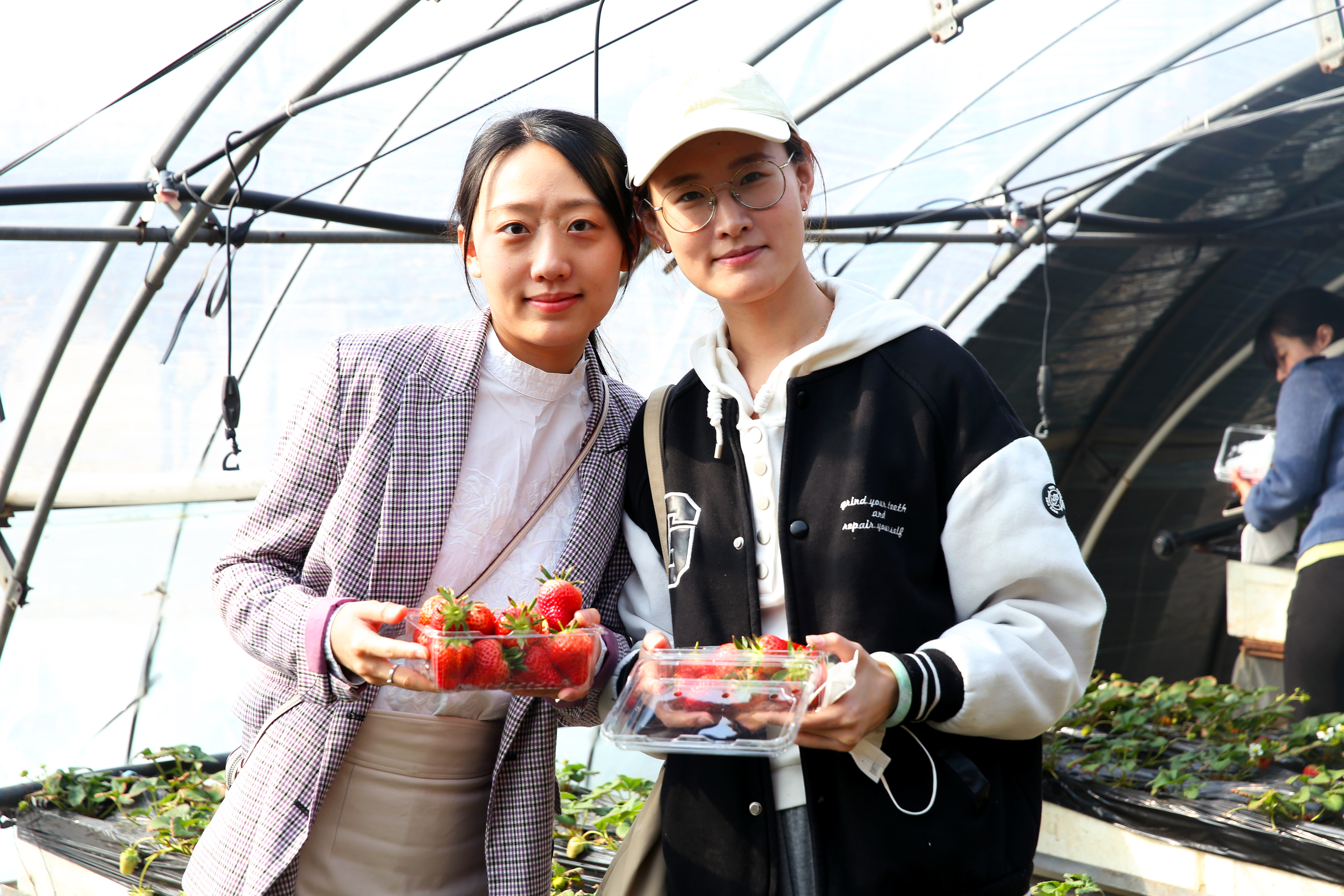 3月8日一早,80余位女職工乘車來到采摘莊園,合影留念過后便三三兩兩地走進溫室大棚,尋找那些最美的草莓。不一會兒,每個人都收獲了滿滿一盒屬于自己的“甜美”。走出“草莓屋”,大家又涌進了“蔬菜室”,在滿眼綠色的各類蔬菜中繼續找尋。那些平日里廚藝精湛的媽媽、妻子、女兒一邊挑選,一邊已經在頭腦中構思了一桌精致的晚宴。