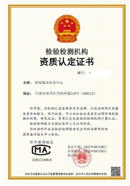 圖 國家海洋技術(shù)中心獲國家資質(zhì)認(rèn)定(CMA)證書