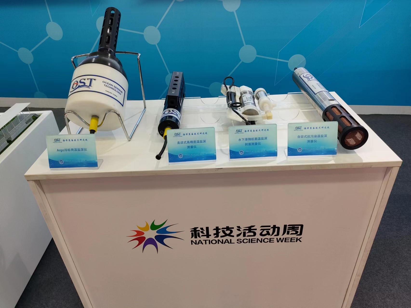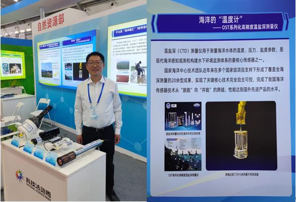 科技成果展覽由國家各部委遴選了具有代表性的高水平科技成果進行展示,自然資源部遴選了19項科技成果入駐自然資源部展區,中心自主研發的系列化高精度溫鹽深傳感器成功入選。中心通過展板、實物、講解等多種方式進行了展示。