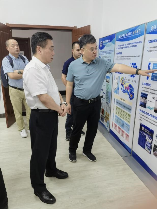 2023年8月10日,為推進(jìn)浙江海洋強(qiáng)省建設(shè)、加強(qiáng)與國(guó)家技術(shù)支撐單位之間的聯(lián)系與合作,浙江省自然資源廳黨組成員、副廳長(zhǎng)阮飆帶隊(duì)訪問(wèn)我中心。中心主任、黨委書(shū)記彭偉陪同參觀中心科技成果展室和海洋儀器裝備動(dòng)力環(huán)境實(shí)驗(yàn)室并主持座談,中心副主任李紅志、業(yè)務(wù)處和相關(guān)業(yè)務(wù)部門(mén)負(fù)責(zé)人參加座談。