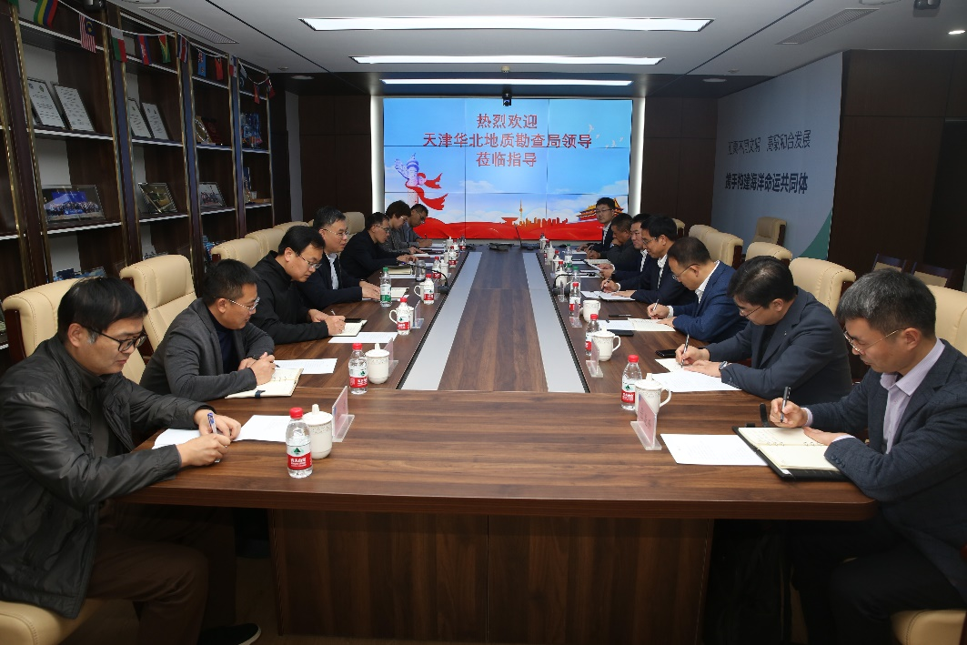 彭偉主任向唐海軍局長一行來訪表示熱烈歡迎,介紹了中心主要職責(zé)、主要業(yè)務(wù)支撐工作、海洋科技創(chuàng)新成果和科研基礎(chǔ)設(shè)施等基本情況。彭偉主任表示雙方在技術(shù)基礎(chǔ)和人才隊(duì)伍等方面各具優(yōu)勢且具有很強(qiáng)的互補(bǔ)性,要進(jìn)一步暢通合作渠道,拓展合作機(jī)會(huì),提升合作層次,更好地服務(wù)海洋與地勘事業(yè)高質(zhì)量發(fā)展。唐海軍局長表示,雙方有合作基礎(chǔ),也有更廣闊的合作空間,希望依托技術(shù)中心在海洋業(yè)務(wù)與海洋科技創(chuàng)新等方面優(yōu)勢,依托華勘局在綜合地質(zhì)技術(shù)、海內(nèi)外市場布局等方面優(yōu)勢,在多領(lǐng)域、多層面共同謀劃項(xiàng)目,不斷提升合作的廣度、深度和高度。