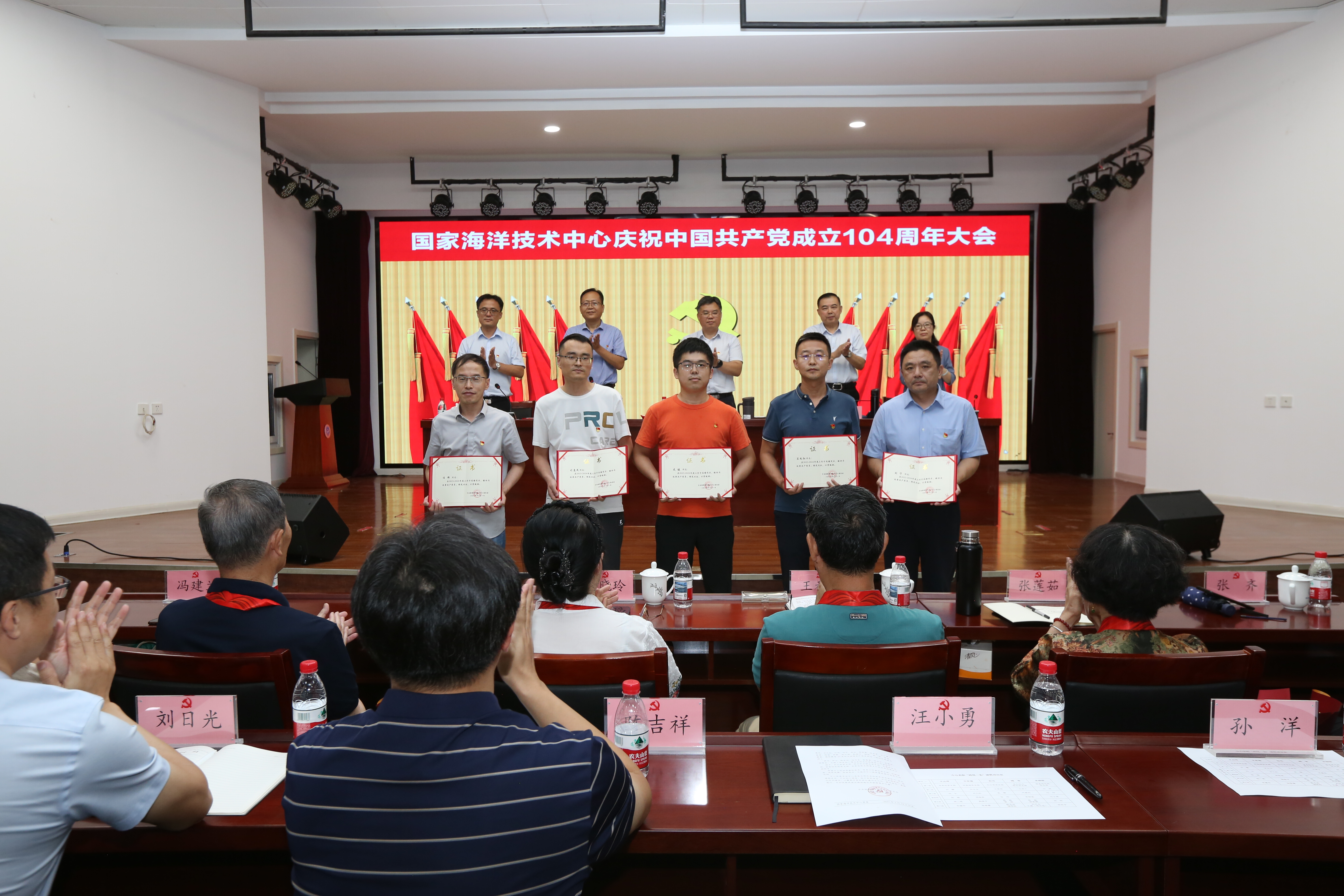 2025年7月1日,國家海洋技術中心舉辦“七一”主題黨日活動,慶祝中國共產黨成立104周年。大會重溫入黨誓詞、頒發“光榮在黨50年”紀念章、表彰先進,通報違規吃喝典型案例,講授專題黨課。中心領導班子成員、處級干部、在職黨員、離退休黨員代表、入黨積極分子等180余人參會。大會由中心黨委副書記王世福同志主持。