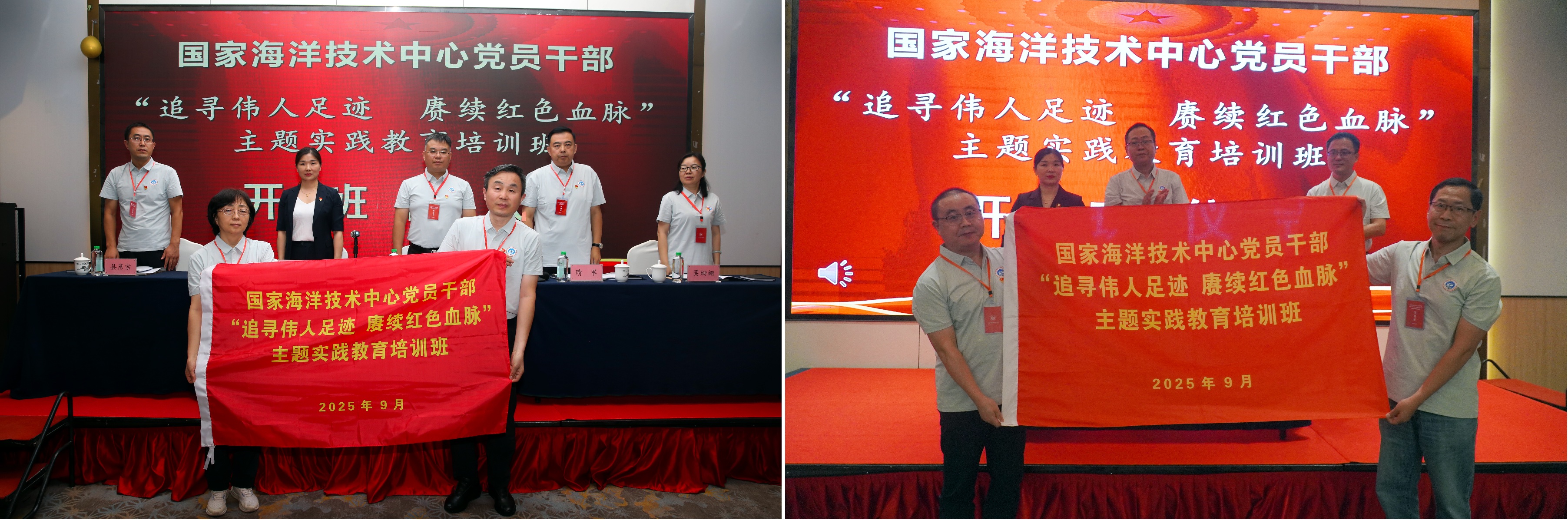 中心黨委書記、主任彭偉和黨委專職副書記王世福分別在兩批培訓開班式上作了動員講話,要求黨員干部從長沙、韶山的革命歷史和偉大精神中汲取寶貴的智慧和力量,進一步堅定理想信念,強化宗旨意識,改進工作作風,提升能力本領,以更加昂揚的斗志、更加飽滿的熱情、更加務實的作風,投身到今后的工作中去,為開創中心發展新局面、支撐自然資源事業改革發展和海洋強國建設貢獻更大力量。承辦本次培訓的韶山市領航教育學校領導與中心領導一同為培訓班授旗,進一步激發了學員們認真開好主題教育實踐活動的責任感和使命感。