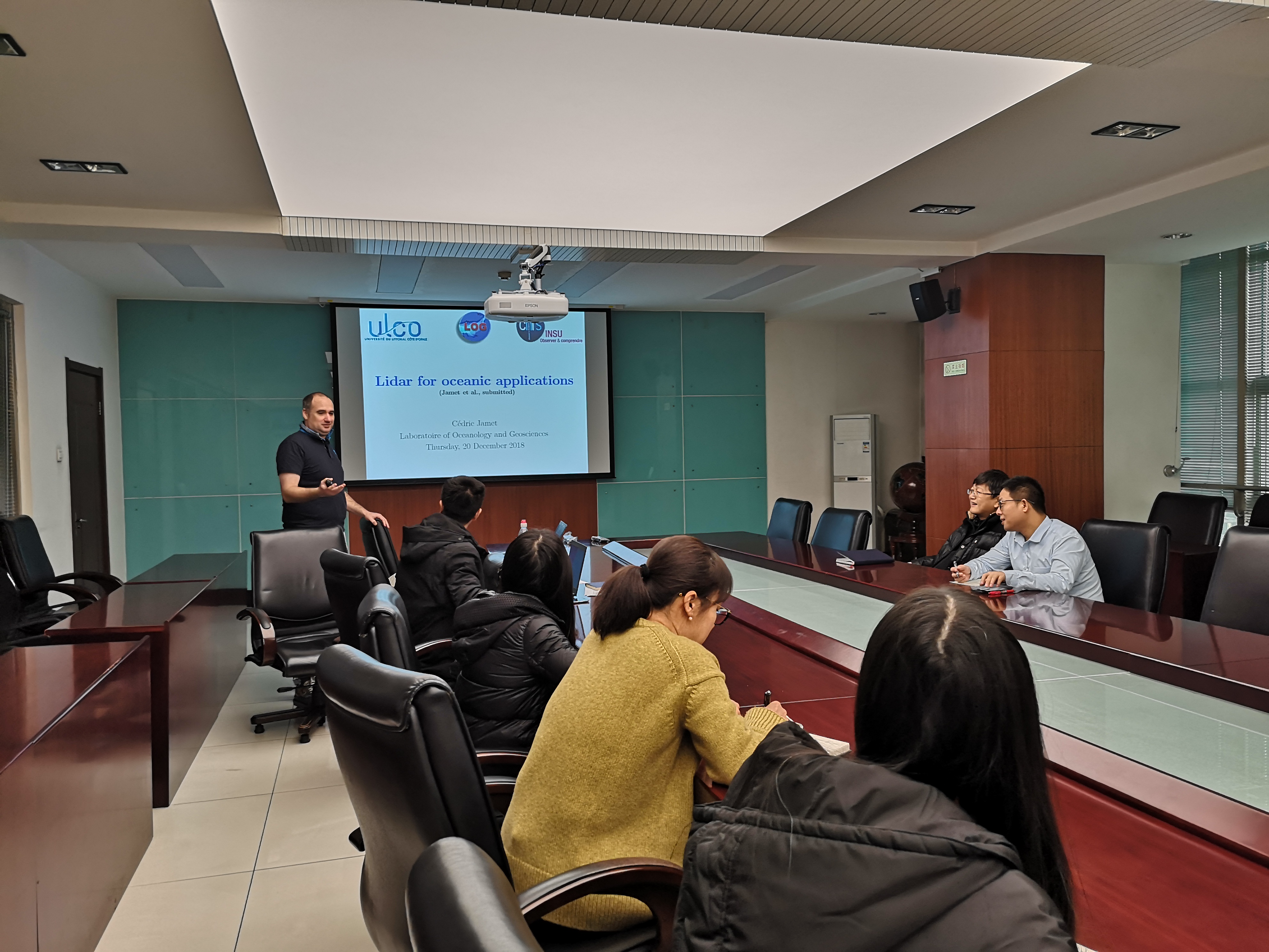 經(jīng)自然資源部批準(zhǔn),應(yīng)我中心邀請(qǐng),2018年12月9日至21日,法國(guó)海洋與地球科學(xué)實(shí)驗(yàn)室(LOG)終身研究員、法國(guó)濱海大學(xué)(ULCO)教授Cédric Jamet博士訪問我中心并圍繞水色遙感定標(biāo)檢驗(yàn)和激光雷達(dá)應(yīng)用開展學(xué)術(shù)講座和技術(shù)交流。
