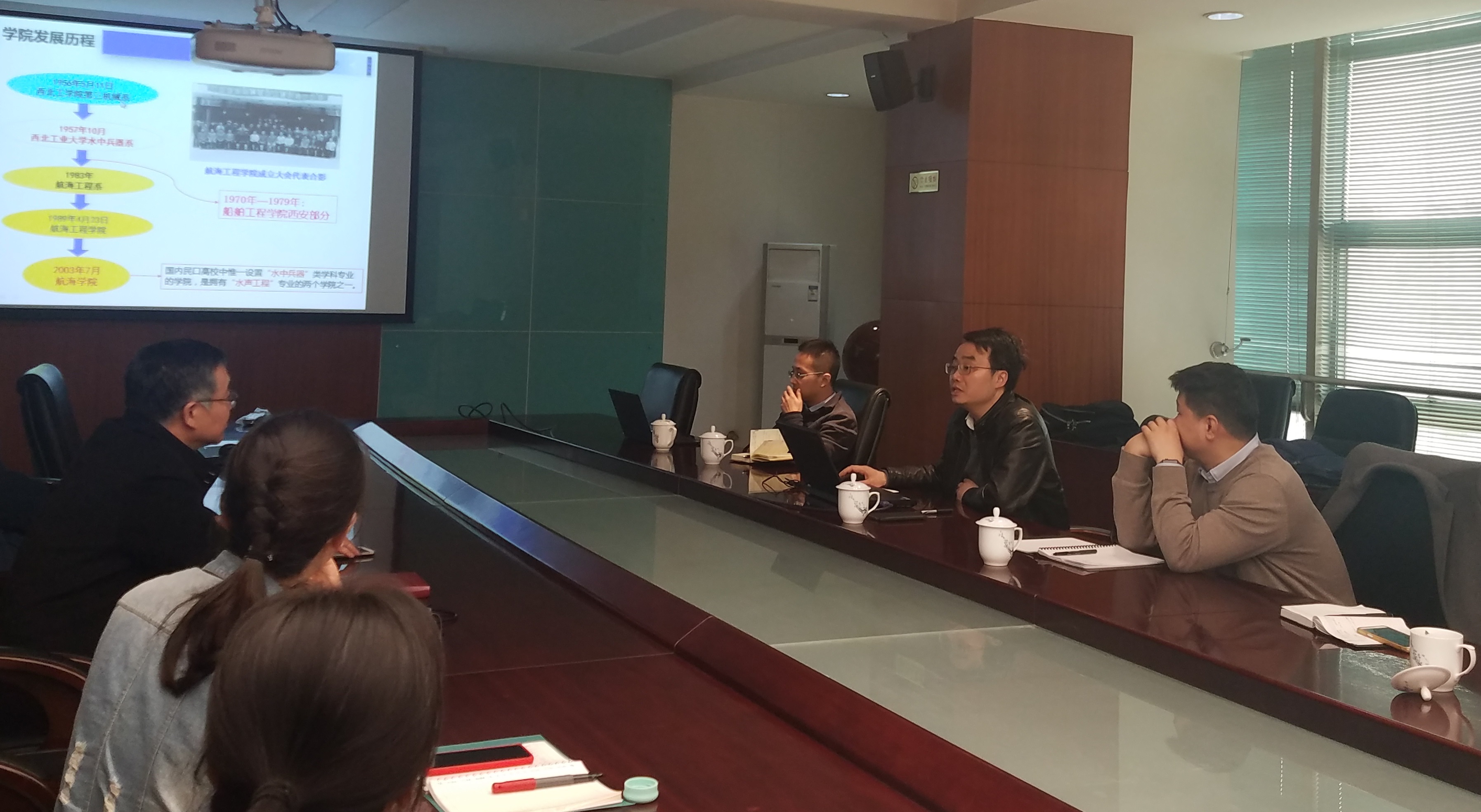 座談會上,深海室主任張選明首先介紹了中心的總體情況、深海室的主要研究方向和已取得的科研成果。楊坤德副院長仔細詢問了中心聲學浮標、拖曳聲源、定時傳輸潛標、實時剖面觀測潛標、Argo、N-Argo等裝備的技術原理、主要指標、工作方式。隨后,楊坤德副院長就西北工業大學的歷史沿革、航海學院的機構設置、人才培養、學科建設作了介紹,并對航海學院水聲工程、水中兵器等特色專業的科研現狀做了更詳細的說明。雙方一致認為,今后應在水聲調查、深海裝備研發等方面加強合作,優勢互補。最后,海保室相關研究人員就XBT、XCTD的性能指標、海上實驗比測結果做了介紹。楊坤德副院長對應用XBT、XCTD開展聲學調查航次方面的合作表示期待。