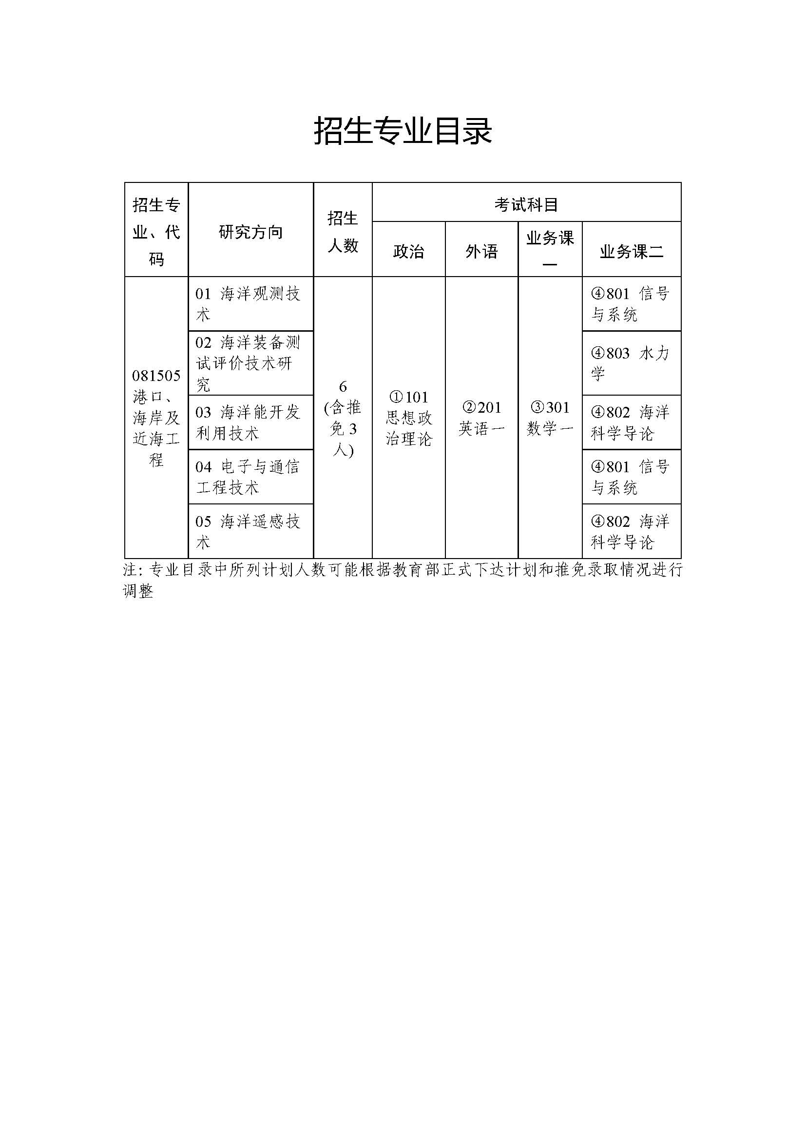 中心2024年計劃招收碩士研究生6名(最終招生人數以教育部正式下達的招生計劃為準)。招生專業為港口、海岸及近海工程,2024年招生研究方向為海洋觀測技術、海洋裝備測試評價技術研究、海洋能開發利用技術、電子與通信工程技術和海洋遙感技術。